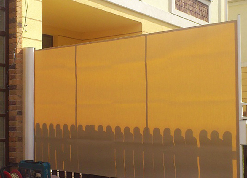 Ткань маркизы наматывается на барабан, скрытый в вертикальной кассете. Чтобы развернуть маркизу, достаточно потянуть за ручку, закрепленную на боковом профиле. Профиль легко скользит по полу или земле благодаря ролику.