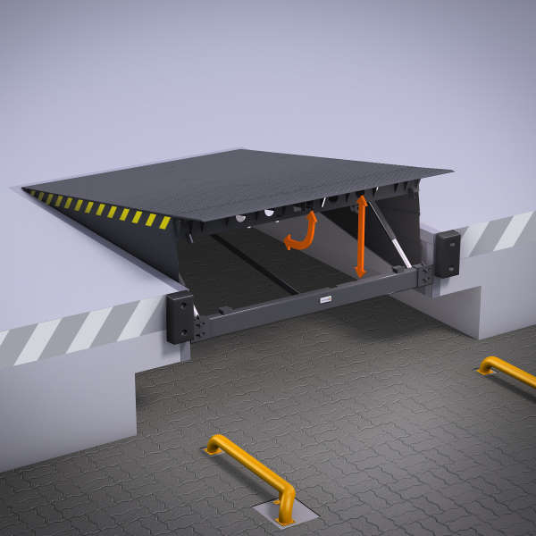 Благодаря уравнительной платформе погрузочная техника может заезжать и выезжать из грузовика, что исключает необходимость применения ручного труда и многократно сокращает время разгрузочно-погрузочных операций.